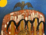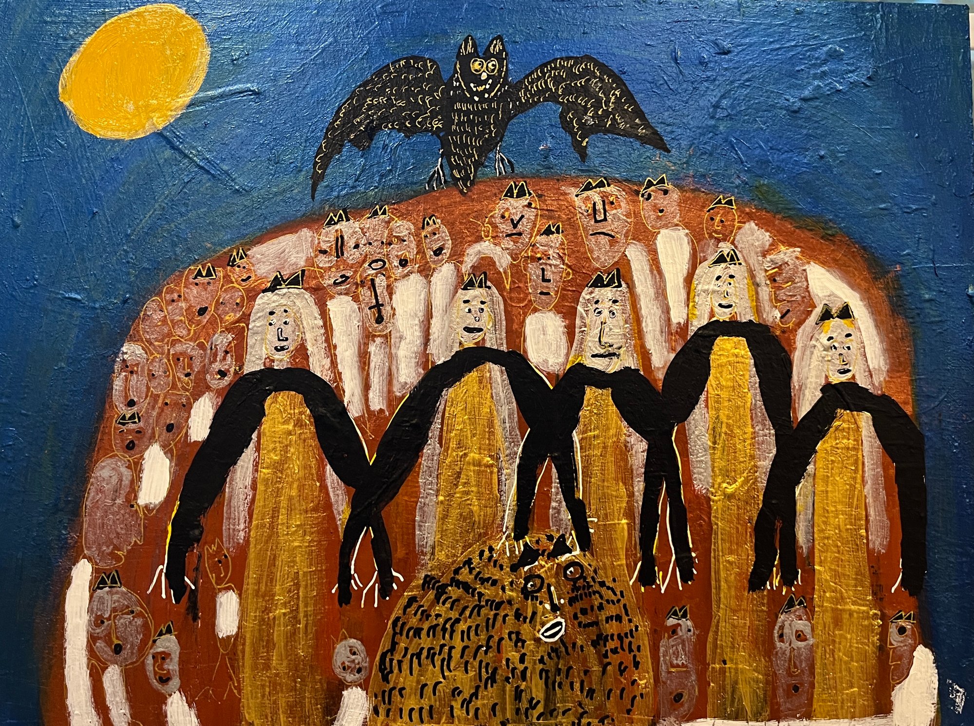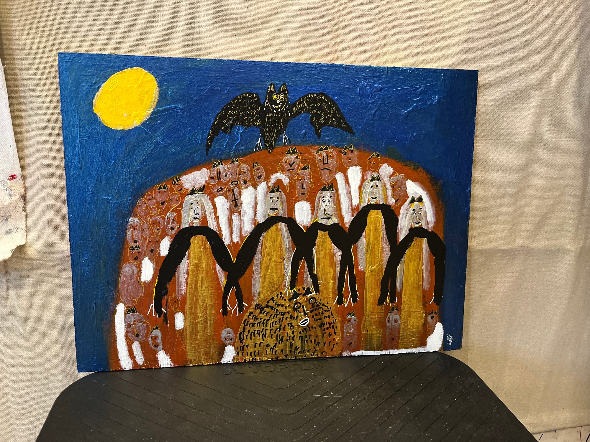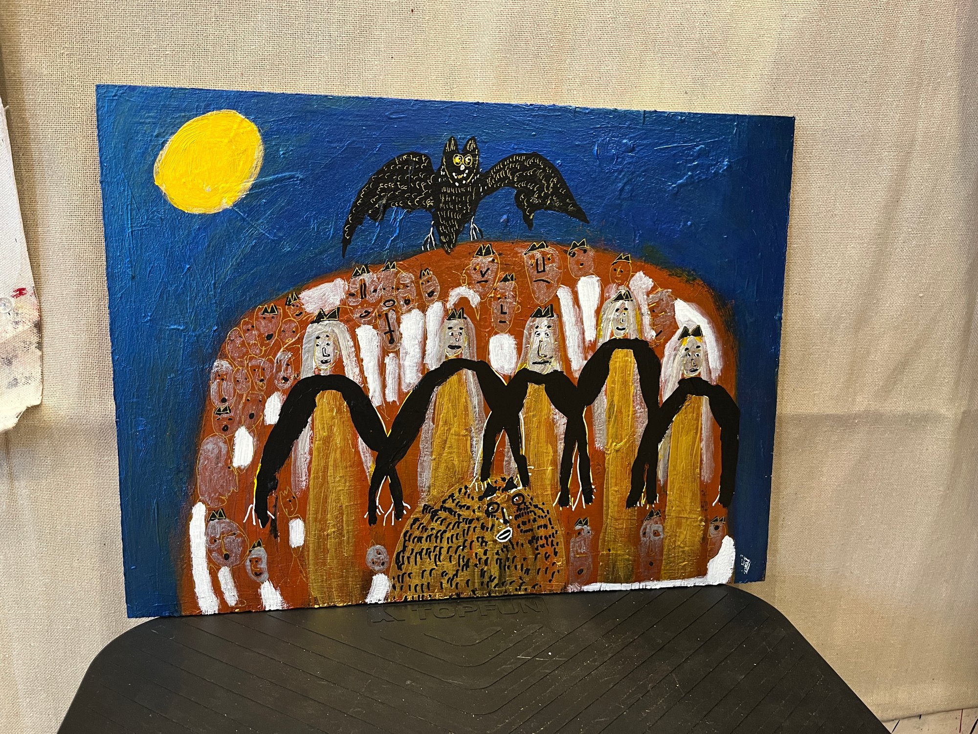 Painted on recycled birch wood - 16 x 12 acrylic paint/pens/pencil