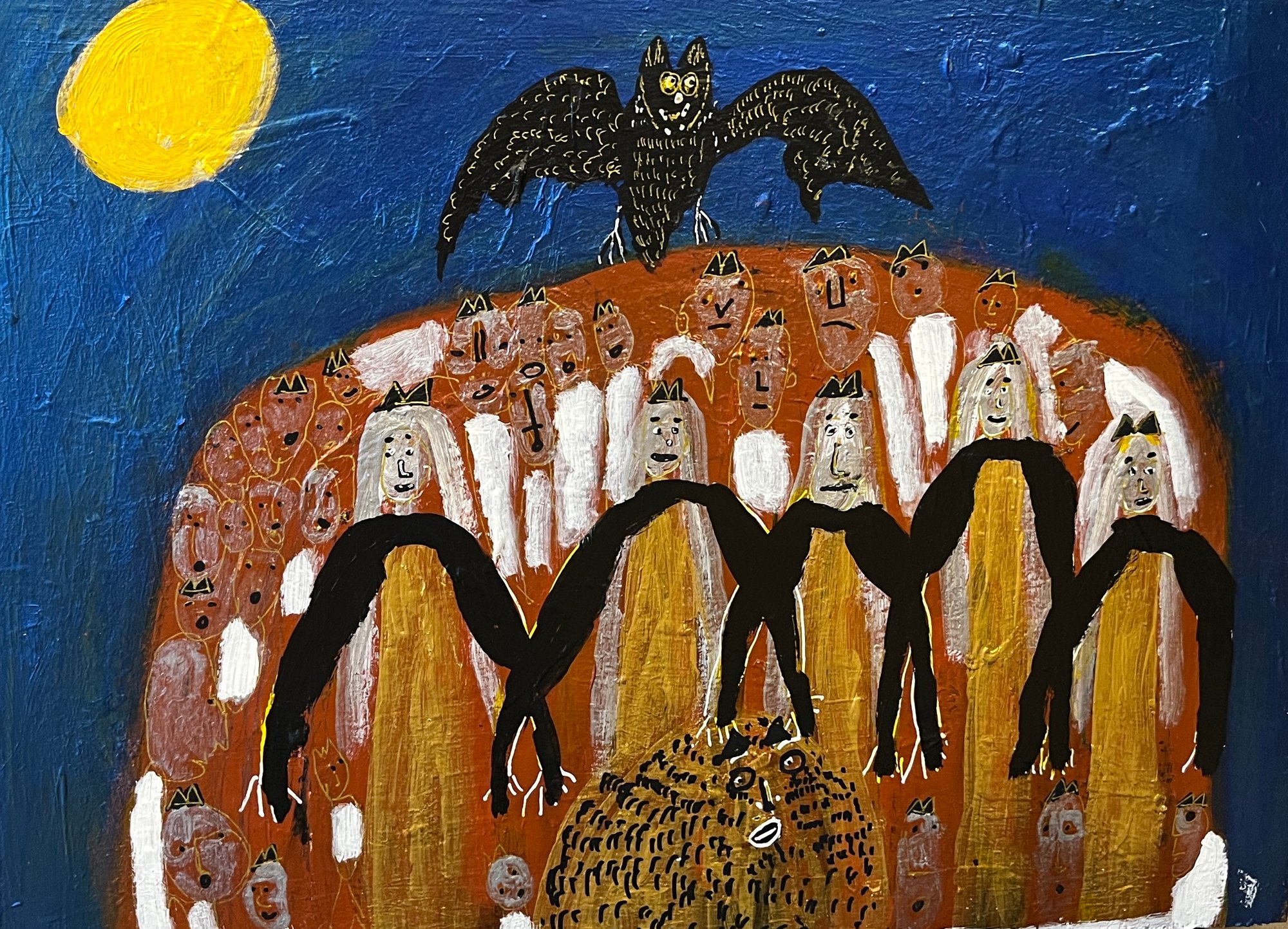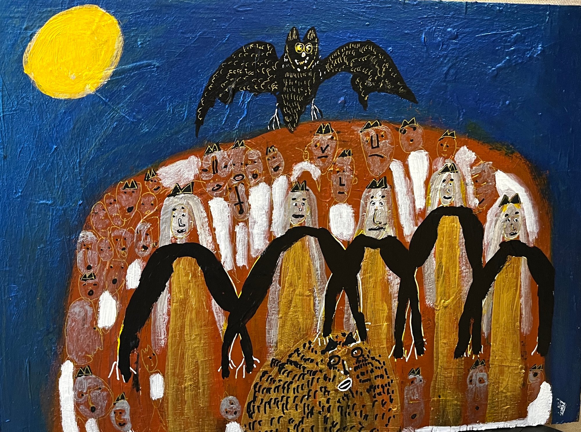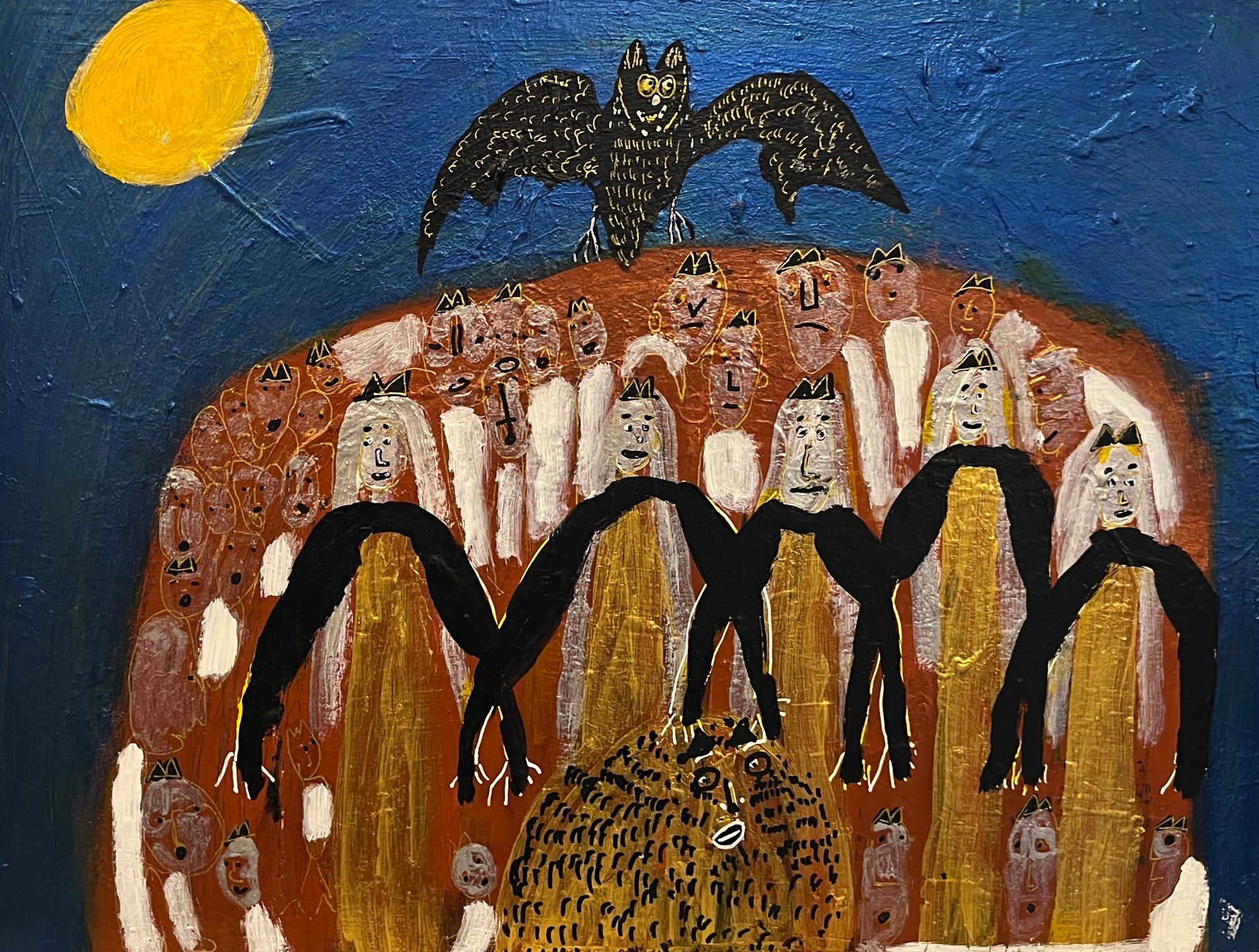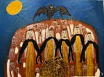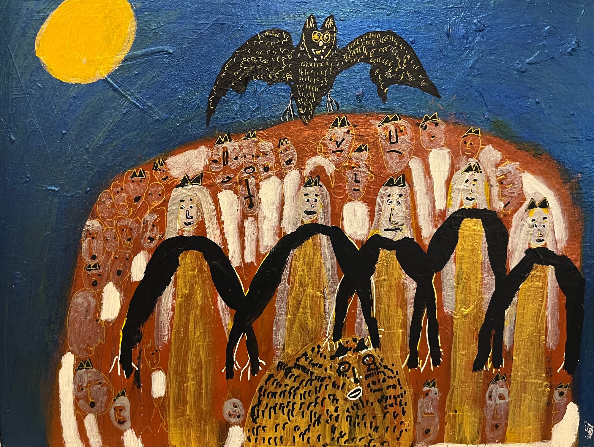 Painted on recycled birch wood - 16 x 12 acrylic paint/pens/pencil