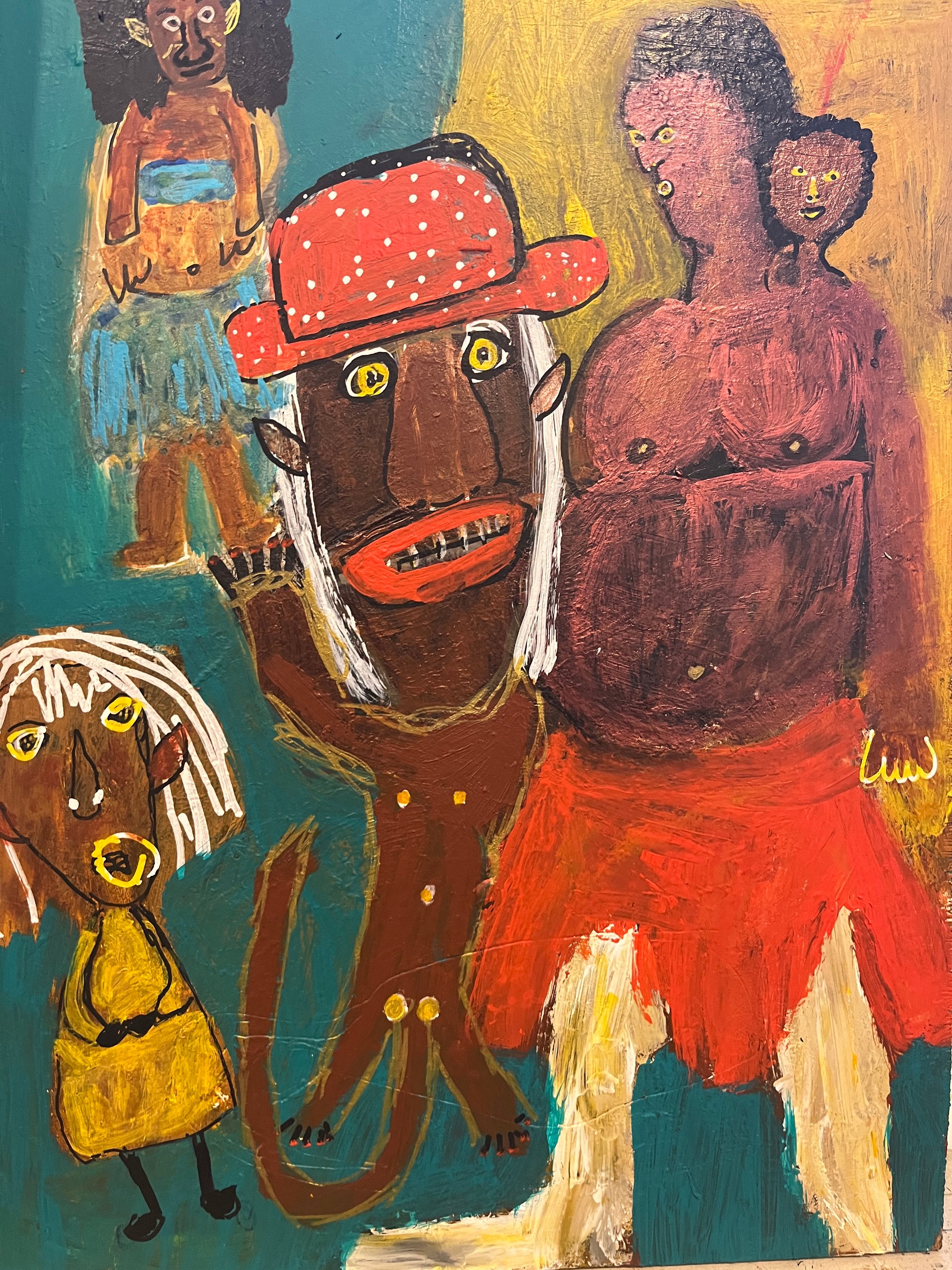 Painted on recycled birch wood - 12 x 16 acrylic paint/pens/pencil
