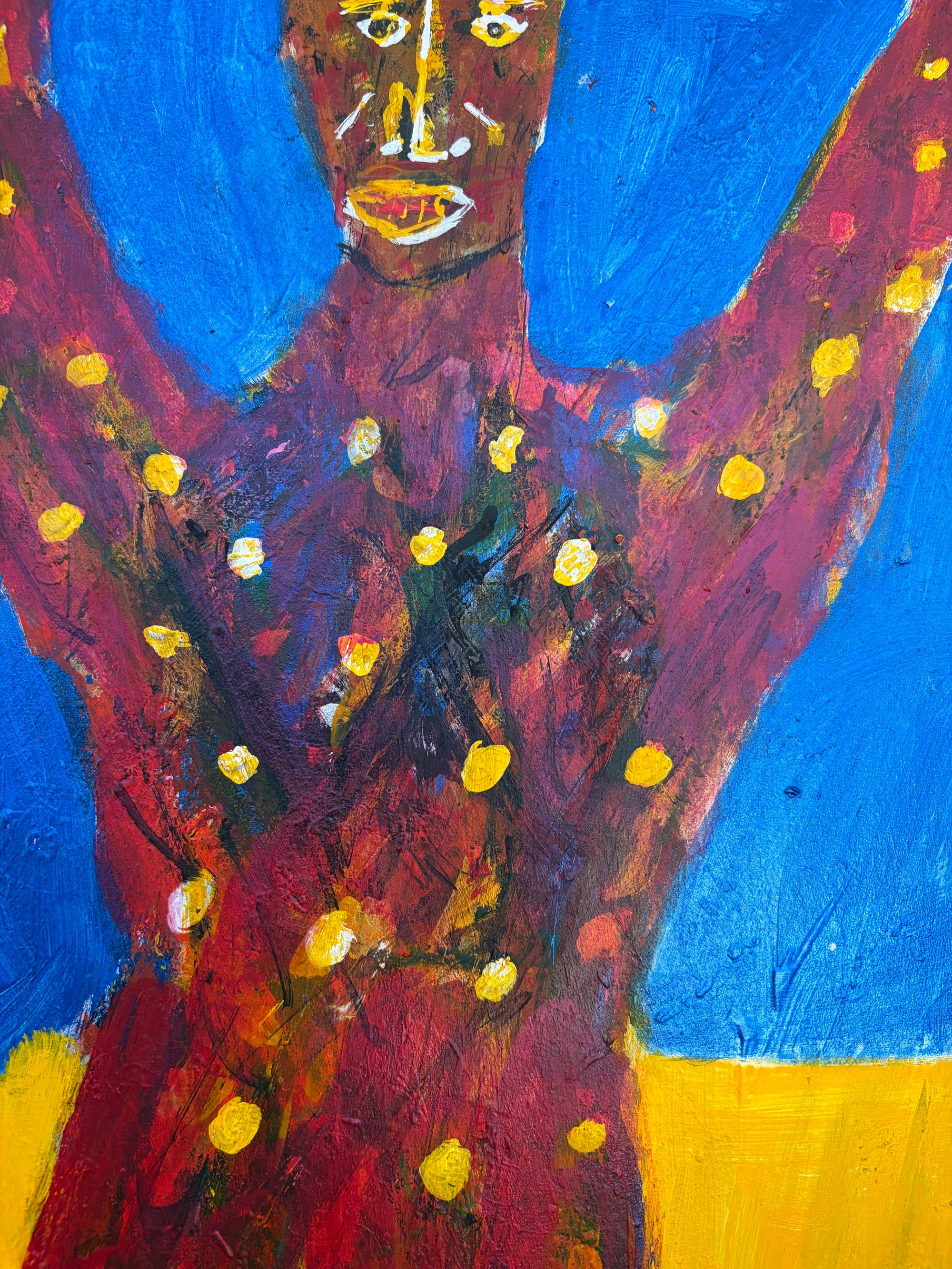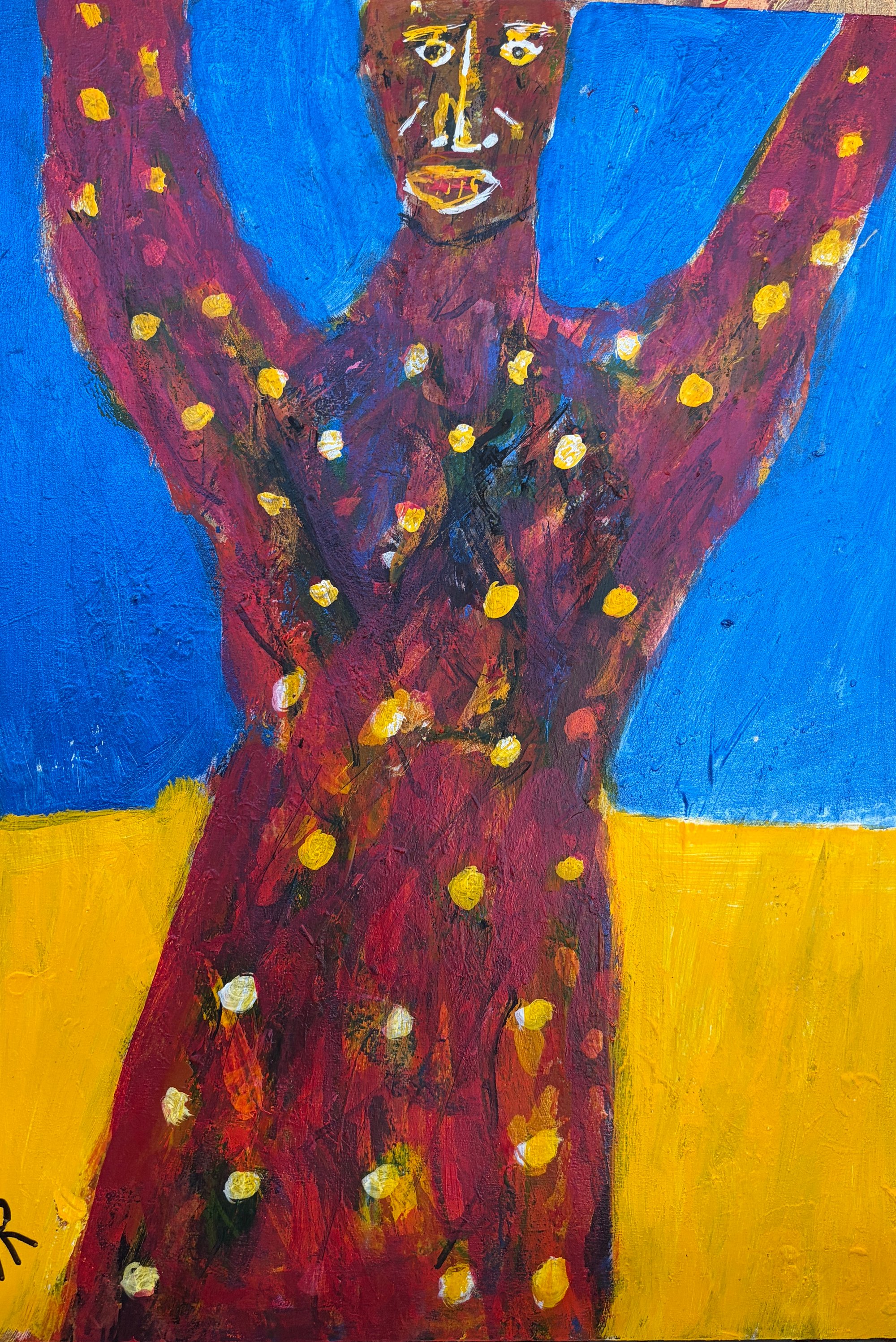 Painted on recycled birch wood - 12 x 16 acrylic paint/pens/pencil