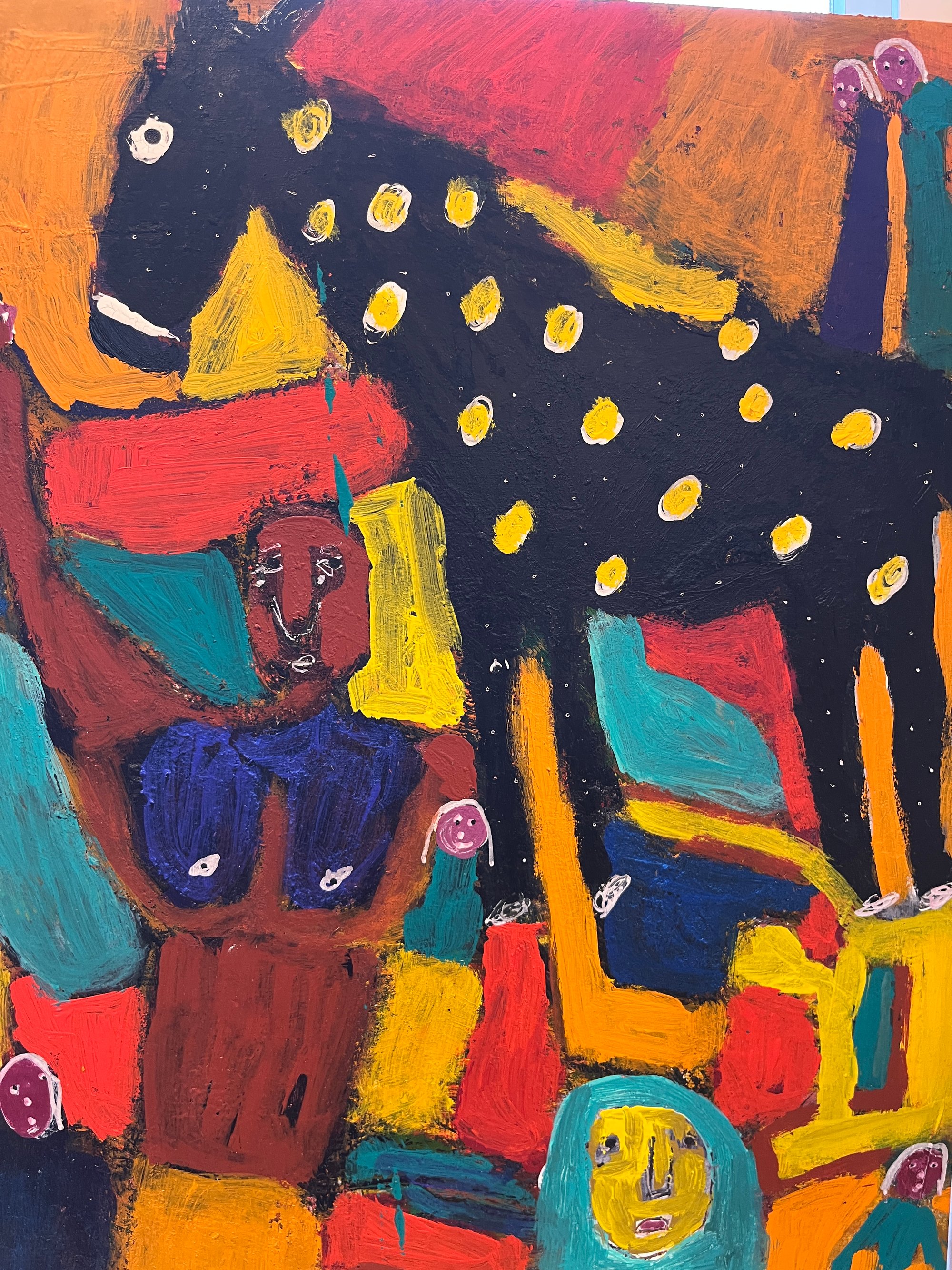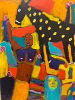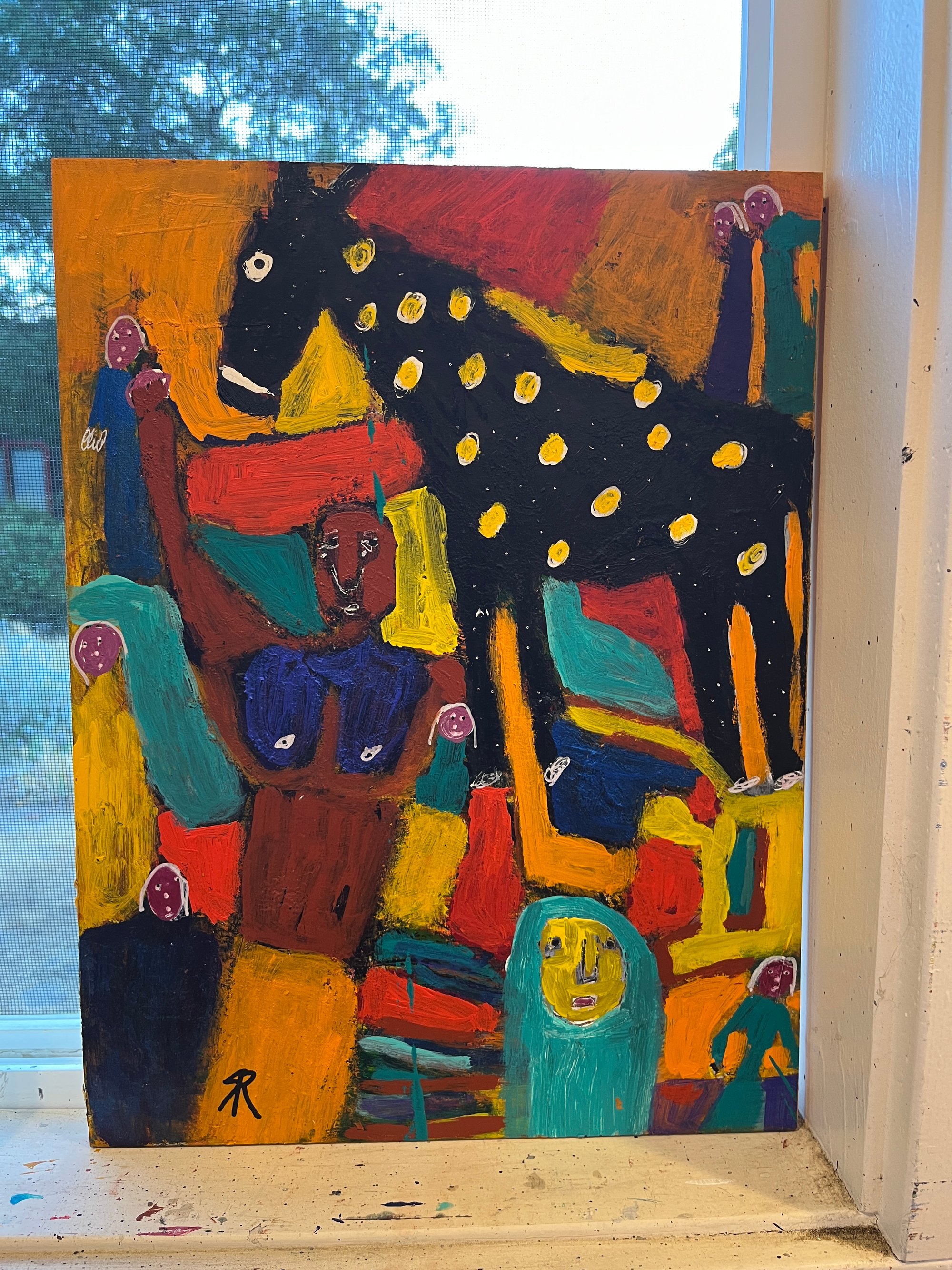 Painted on recycled birch wood - 12 x 16 acrylic paint/pens/pencil