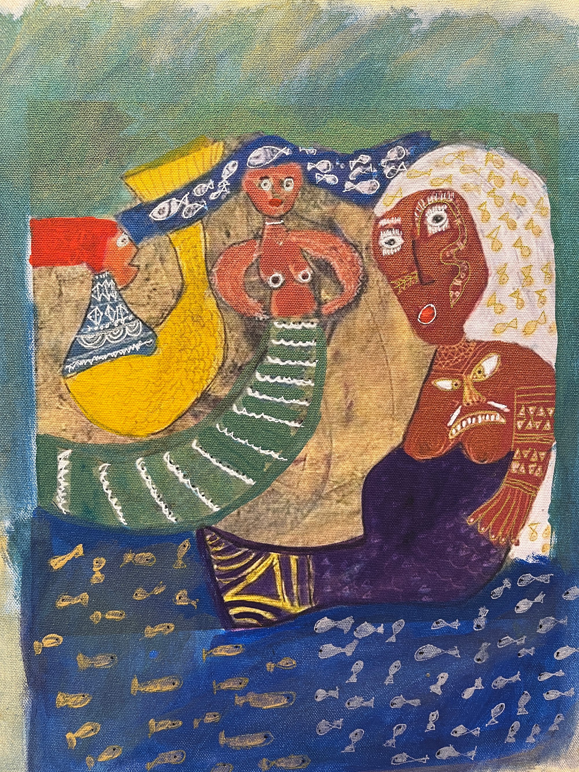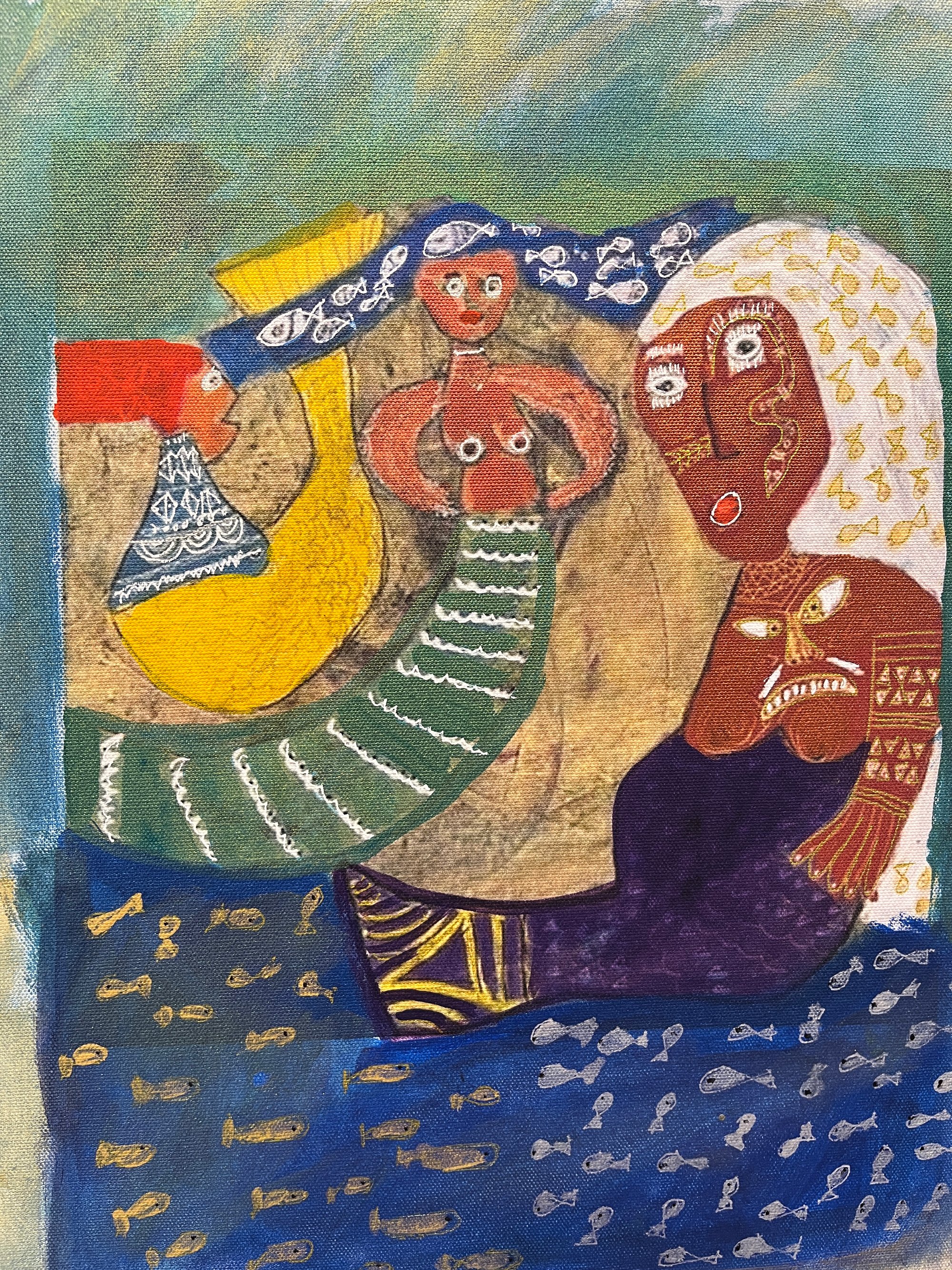 Painted on unframed loose canvas- 36 x 24 acrylic paint/pens - will ship in a tube