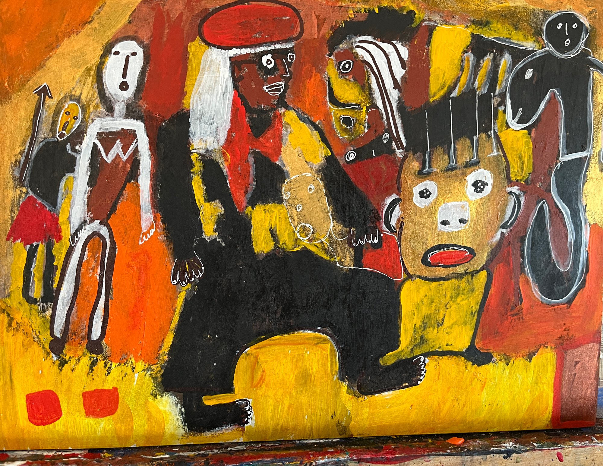 Painted on recycled birch wood - 16 x 12 acrylic paint/pens