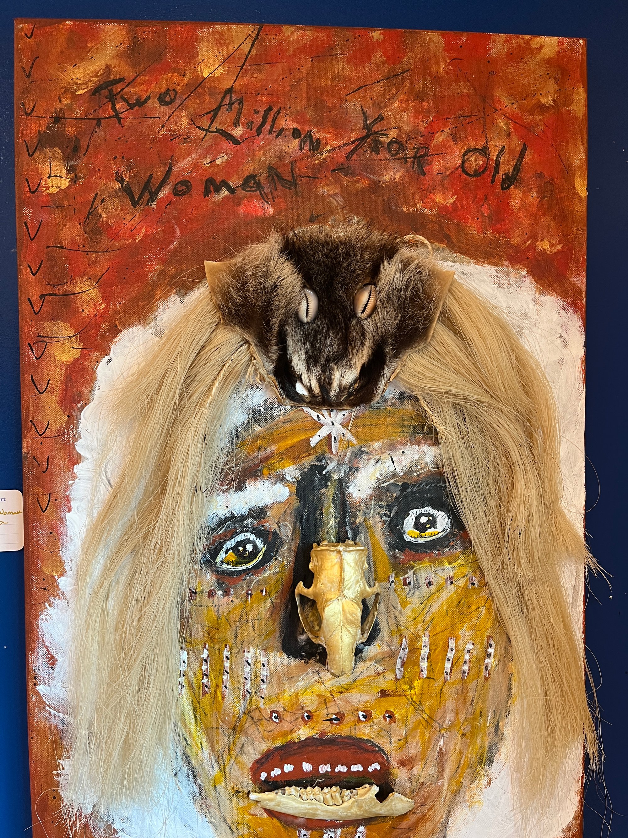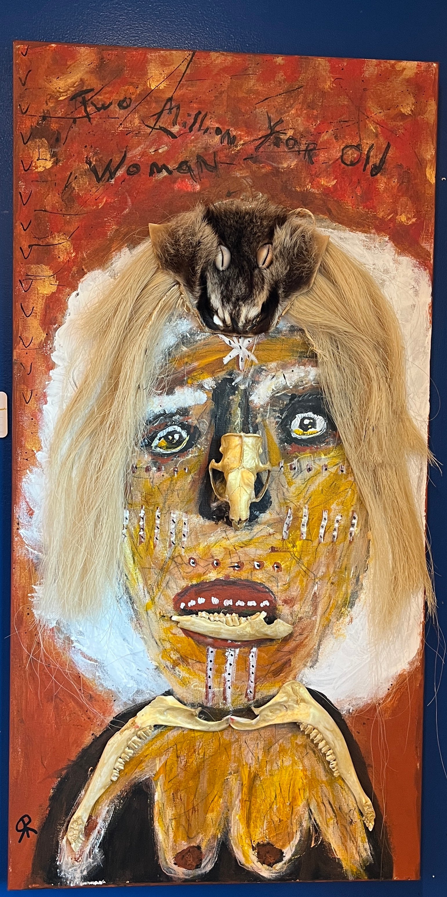 Mixed Media on canvas, acrylic paint/pens, bones/horse hair/fur